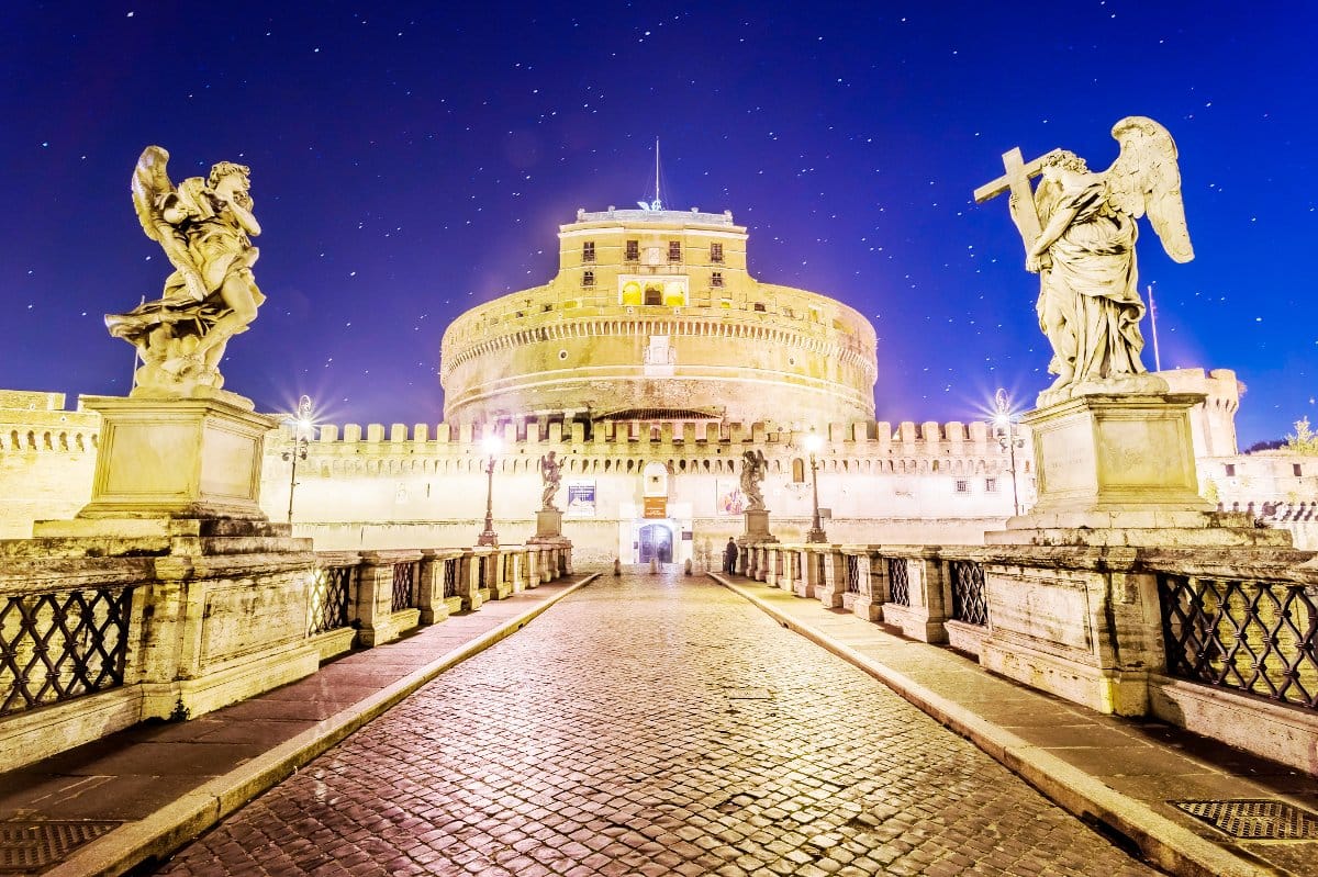 Starożytny most Hadriana na rzece Tyber, który w czasach papieskich był główną drogą łączącą Watykan z centrum Rzymu. Pod koniec XVII wieku most został ozdobiony barokowymi figurami aniołów prezentujących narzędzia męki Chrystusa. Widok Zamku od strony mostu Anioła to klasyczne miejsce pamiątkowego zdjęcia.